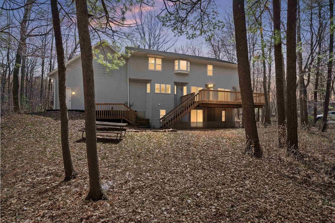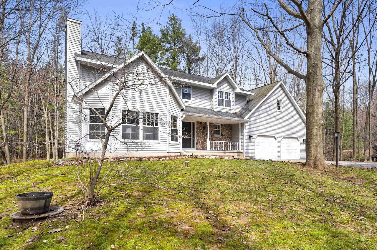 Beautifully updated home set on a private wooded lot in a desirable HSSD. Open-concept layout with abundant natural light, new flooring, and a stunning kitchen featuring a large island, walk-in pantry, and modern finishes. Inviting living room offers a cozy gas fireplace and vaulted ceilings. Primary suite includes a walk-in closet and a luxury bath with porcelain tile. Bedrooms feature ample storage with double closets. Finished walk-out basement includes a 4th bedroom and full bath. Extra-deep heated garage with vaulted ceiling provides excellent space for a workshop or additional storage. Enjoy the peaceful setting from the deck overlooking mature trees. Experience ?up north? privacy and wooded surroundings without the long drive. Some photos virtually staged. Listing agent is owner