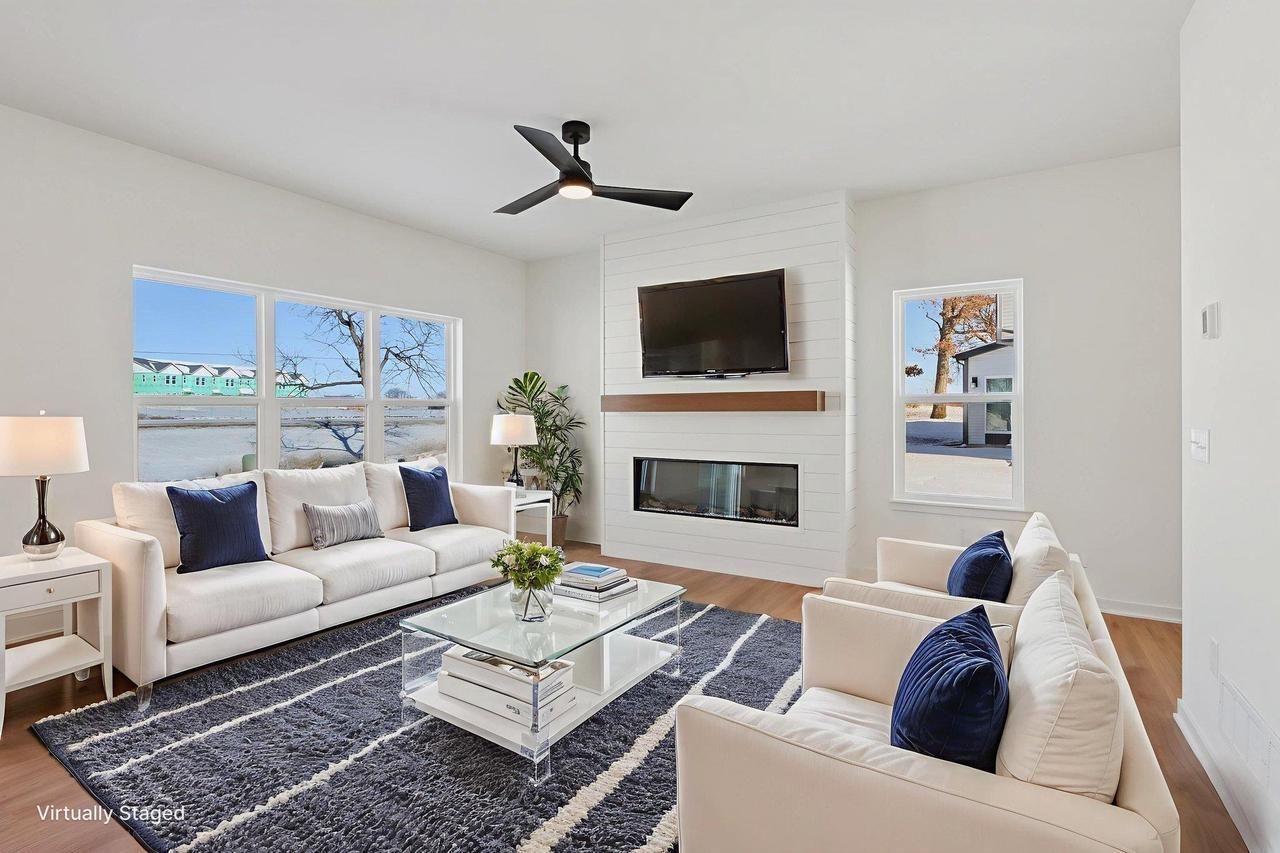Welcome to this stunning twin home offering style and functionality. A bright airy great room is the heart of the home, with abundant natural light and a cozy fireplace ideal for relaxing evenings. The sunny kitchen is a dream perfect for entertaining, with quartz countertops, an extra-large island, ample cabinetry, and a large pantry. Outside, enjoy the large deck overlooking a backyard perfect for outdoor dining, play, or pets, with fencing allowed in the neighborhood. The main level includes a convenient powder bath & rear foyer with easy access to the 2-car garage. Upstairs, the spacious primary suite impresses with elegant box tray ceilings, a large walk-in closet, and a private en-suite bath. Two additional bedrooms, a full hall bath, and a second-floor laundry room complete the upper level, making everyday living effortless. Move in Ready in August - photos of a similar model. This energy-efficient home checks all the boxes, Don't miss your chance to make it yours!
