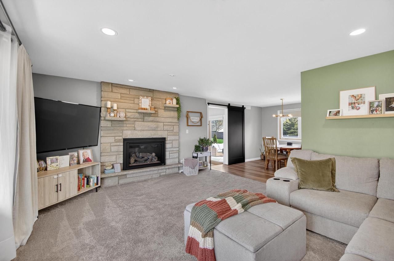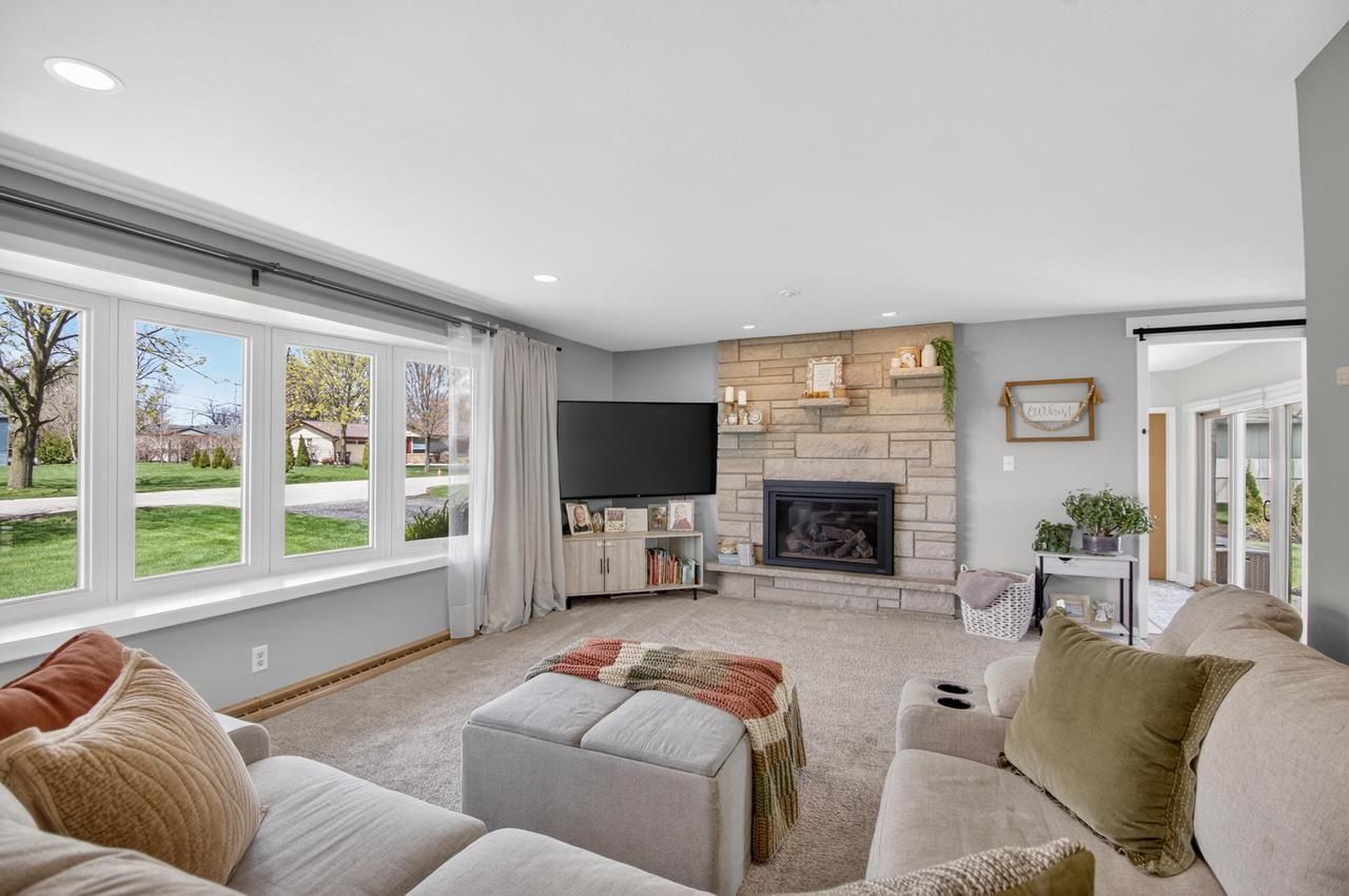 Welcome home to this well maintained, brick ranch situated on just under a half acre. As soon as you walk in you will feel right at home in the spacious but cozy living room with gas fireplace, newer carpet and new bay window. Kitchen is nicely sized with plenty of counter space, newer appliances, & new counter tops. Formal dining room makes family dinners & entertaining easy. Den offers additional living space, perfect for an office with sliding doors that lead to the patio in the nicely landscaped inviting backyard. First floor has all new flooring throughout. Primary bedroom has a full bathroom with tiled walk in shower. Each bedroom is nicely sized with plenty of closet space. The finished basement offers new flooring, bar, laundry room & storage.